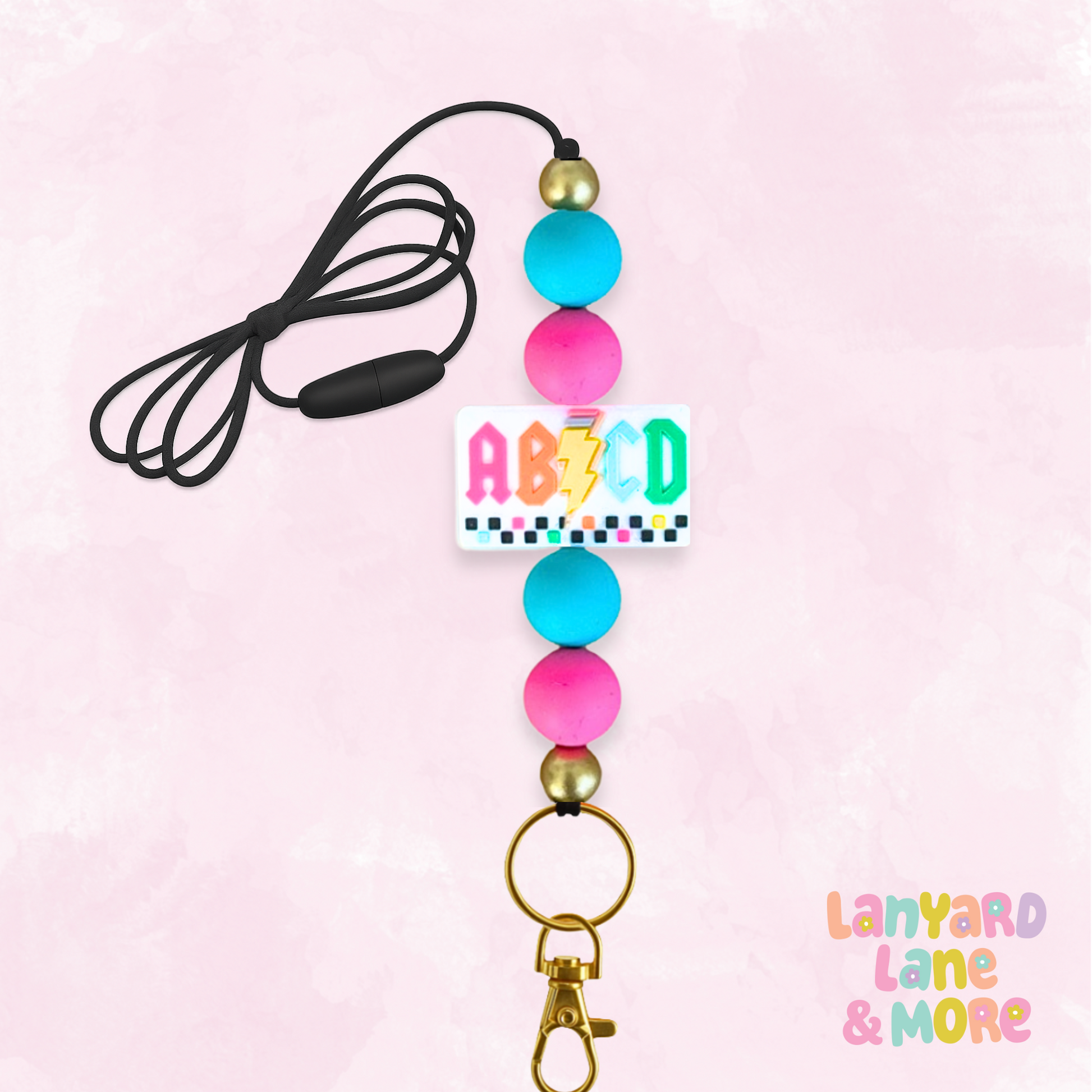 Turn up the volume on your teacher style with our ABCD Rockin’ Teacher Lanyard! Featuring bright pink and teal beads with bold gold accents, this lanyard showcases a lightning bolt ABCD charm that brings serious retro-rock vibes. Sturdy, lightweight, and full of personality, it’s the perfect way to keep your keys, ID, or badge handy while showing off your colorful side.
