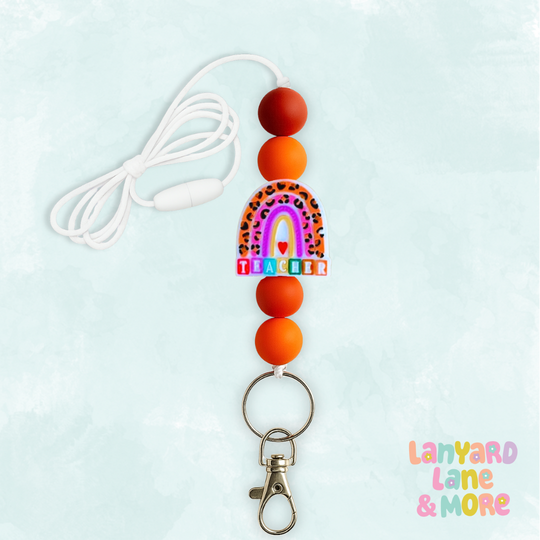 Unleash your inner teacher rockstar with our Wild About Teaching lanyard! Featuring bold orange and red beads paired with a leopard print rainbow charm that proudly spells out “TEACHER,” this lanyard brings both style and spirit to your classroom wardrobe. Durable, lightweight, and comfy to wear all day — it’s the perfect mix of function and flair.