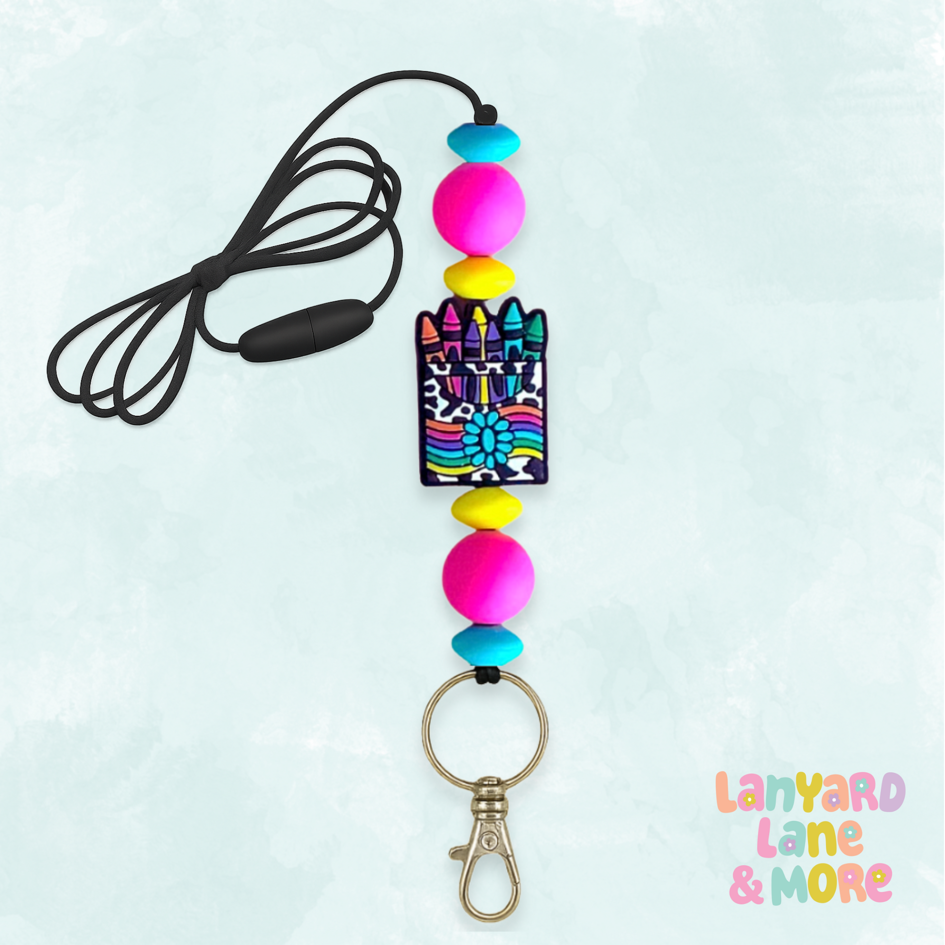 Add a pop of playful color to your everyday essentials with our Color Me Happy Lanyard 🎨. Featuring bold neon beads in pink, yellow, and teal, paired with a cheerful rainbow crayon box focal bead, this lanyard is a must-have for teachers, artists, and anyone who loves a little extra brightness in their day.