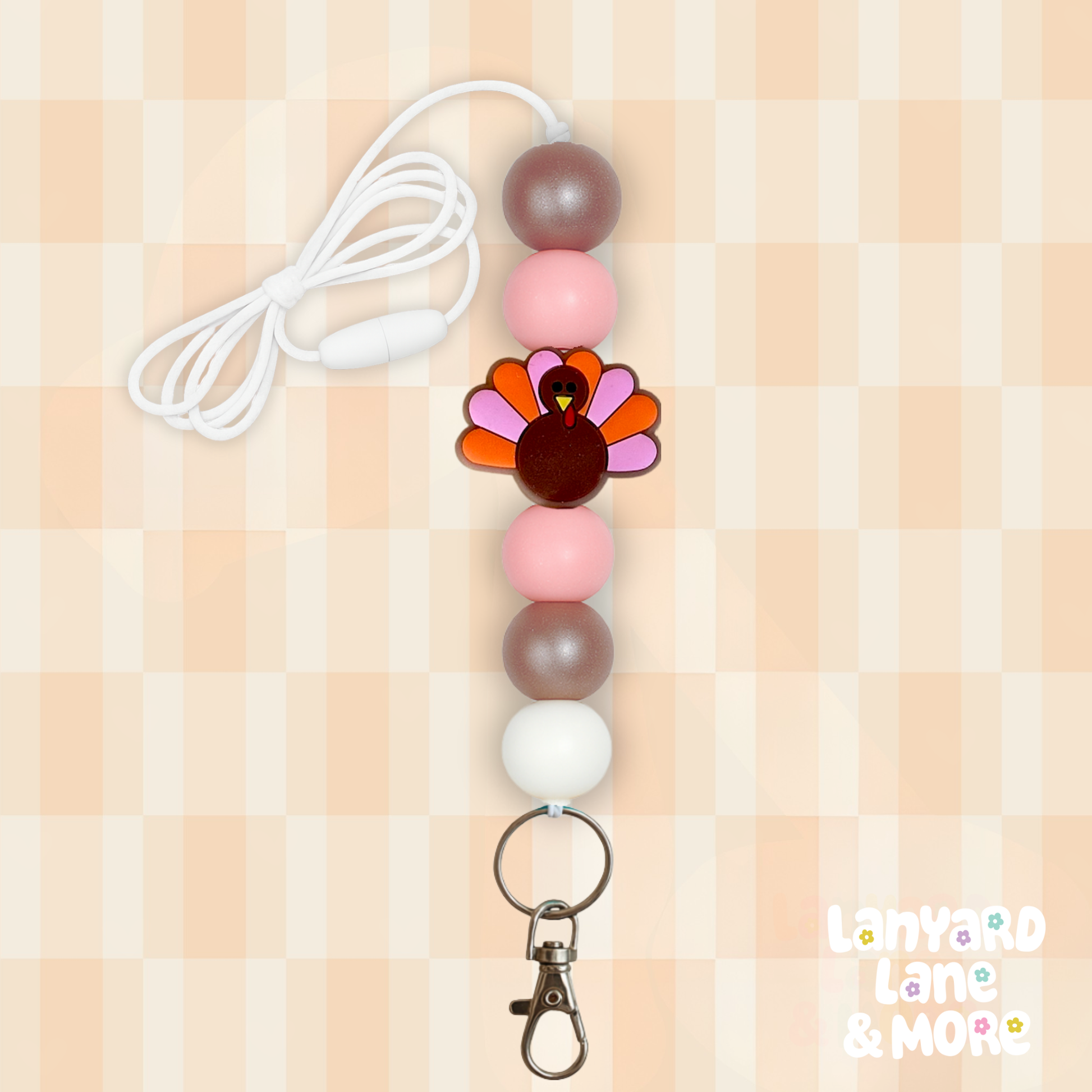 Bring the fun of fall wherever you go with our Gobble & Glow lanyard! This festive design features a cute turkey bead surrounded by warm bronze shimmer, blush pink, and creamy white tones — perfectly capturing the cozy, playful spirit of the season. Whether you’re in the classroom or on the go, this lanyard adds just the right touch of Thanksgiving cheer. 🍁