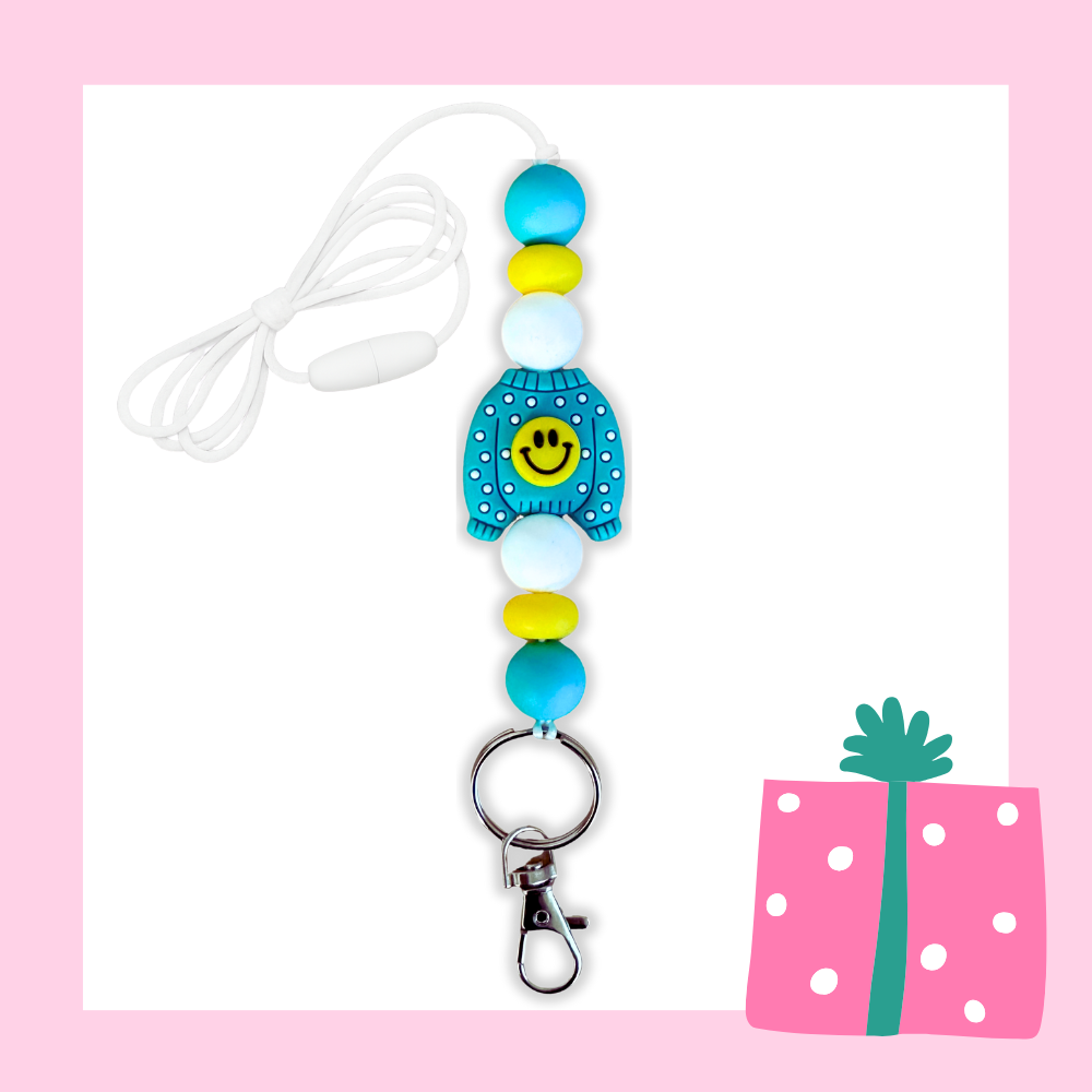 For the teacher who lives for cozy winter days and happy colors. This Merry Smiley Sweater lanyard brings holiday cheer in bright aqua, sunshine yellow, and white, so it feels fun and festive in December but cute enough to wear all school year long.