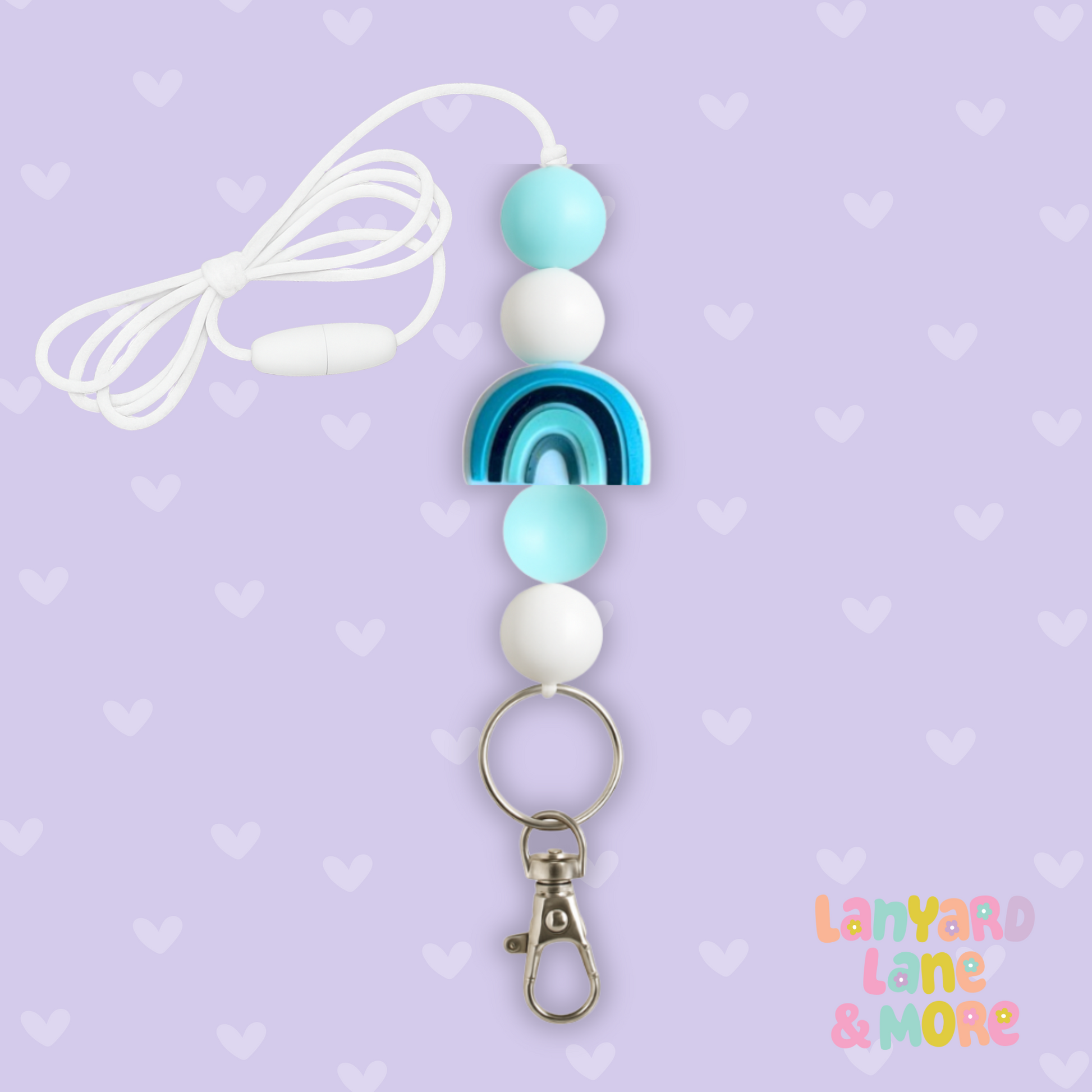 Brighten your day with this Blue Mint Rainbow Lanyard – a cheerful mix of mint, white, and a rainbow centerpiece. Perfect for teachers, parents, or anyone who loves a pop of color while keeping keys and ID handy.