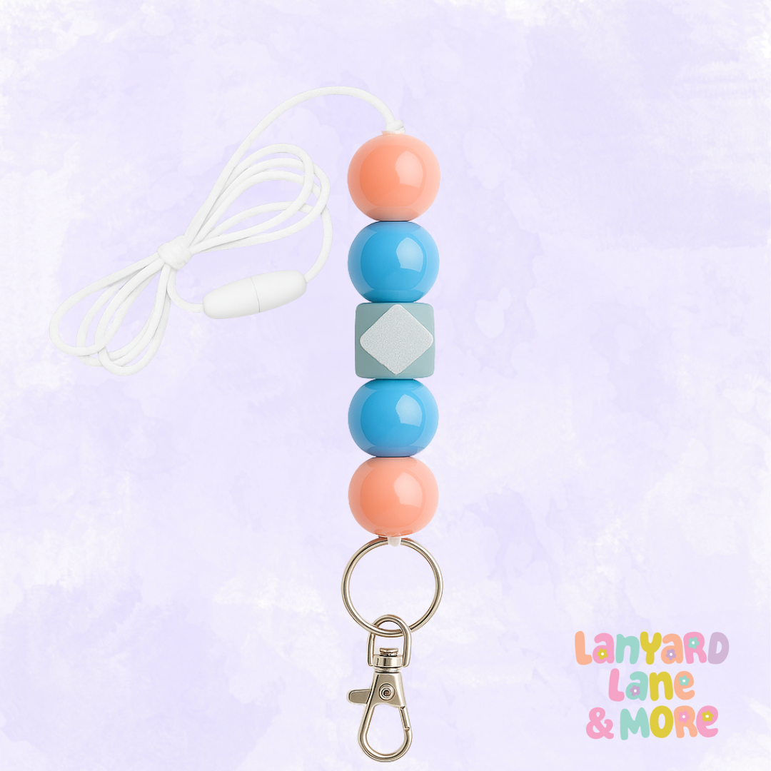 Bright, playful, and bursting with creativity — this art-inspired lanyard is made for teachers who love to add a splash of color to their day. Featuring a mix of blue beads, a painter’s palette charm, and rose gold hardware, it’s the perfect accessory to show off your creative side!