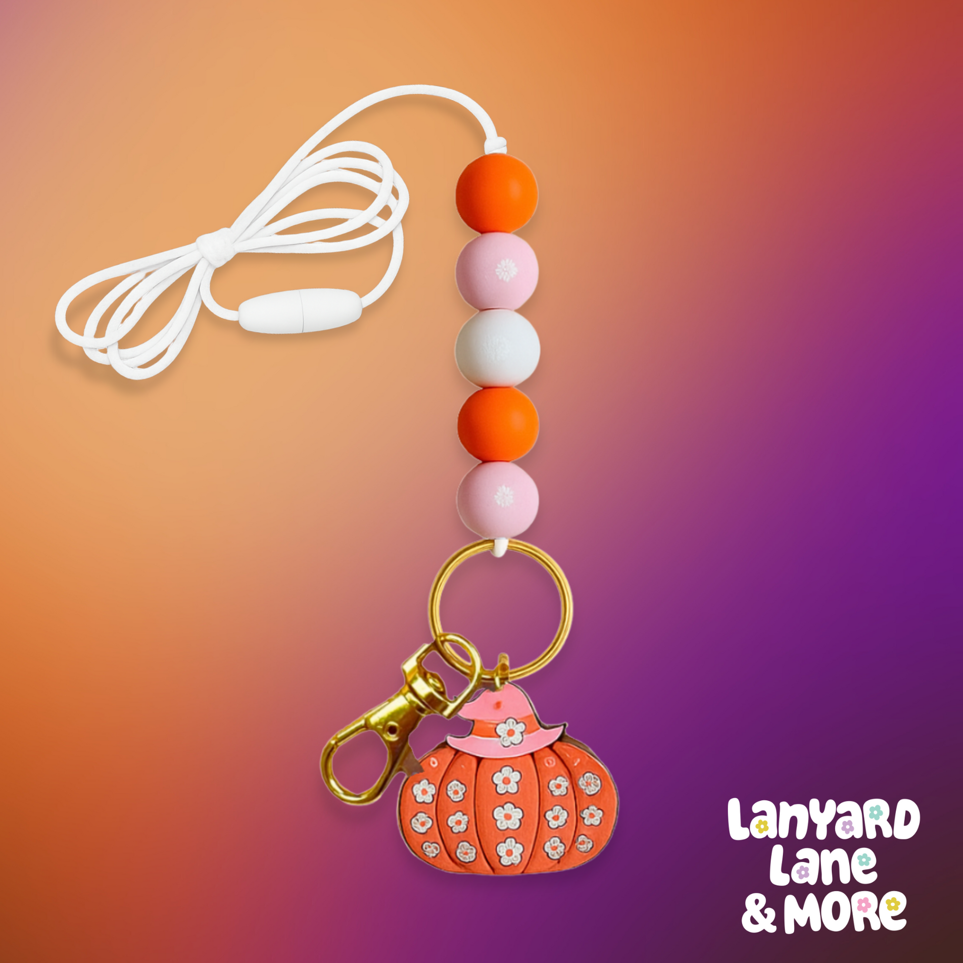 Bring fall flair to your everyday look with this playful lanyard featuring bright beads and a whimsical pumpkin blossom charm. Perfect for adding seasonal style while keeping keys or badges handy.