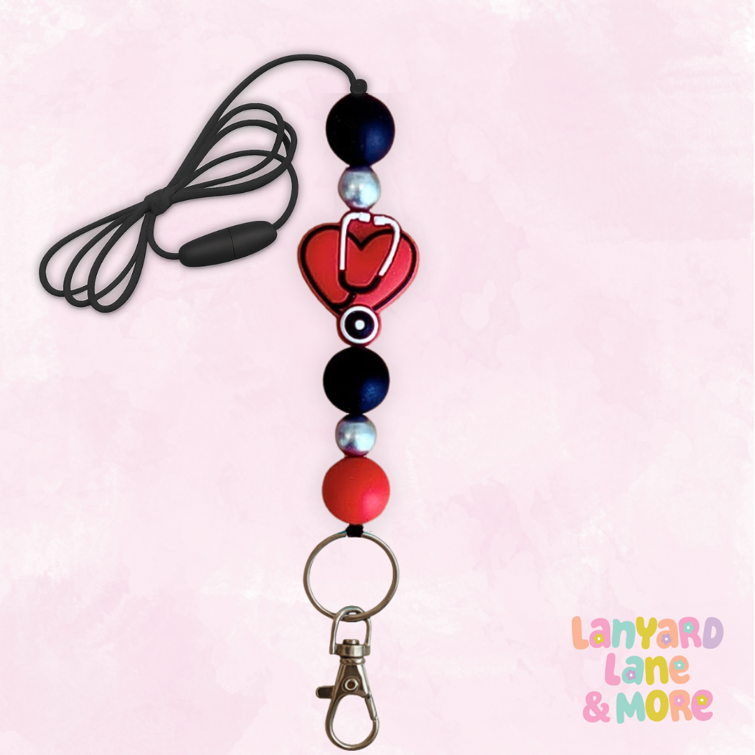 Show off your passion for caring with our Heart of a Nurse Lanyard! Featuring bold black and red beads with a heart-shaped stethoscope charm, this lanyard is perfect for nurses, medical staff, and healthcare heroes. Durable and lightweight, it keeps your badge, keys, or ID secure while adding a touch of love to your scrubs.